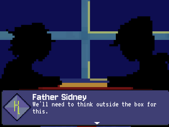 A: Play as Father Sidney in the Visual Novel Style, make choices to determine what he associates with by the end. Faith? Or the Law?